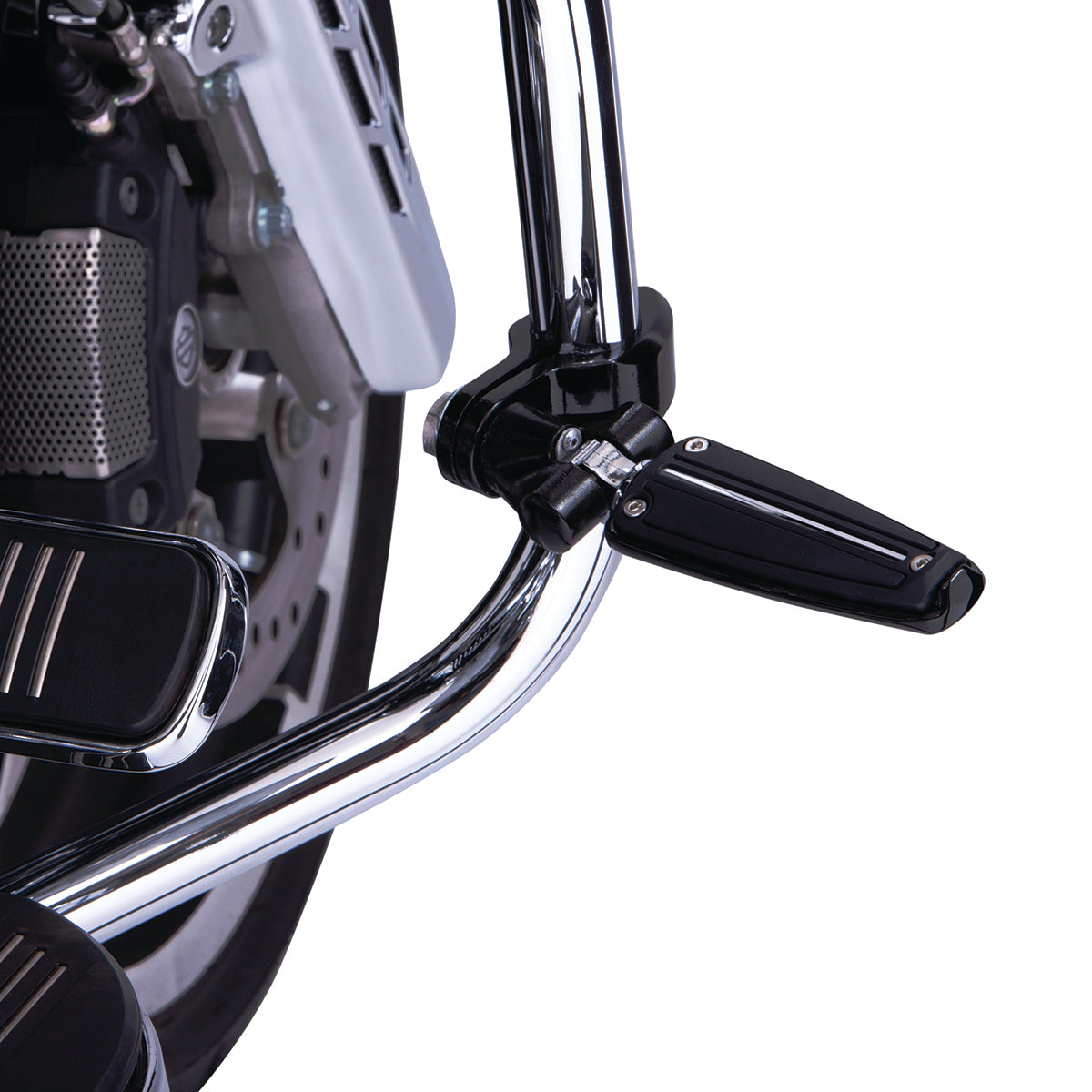 Ciro® engine guard highway peg mounting kits are the modern solution for motorcycles equipped with 1-1/4" engine guards. Our patented pinless design is the strongest and most elegant solution of any engine guard mounting clamp in the motorcycle market today. The ratcheting footpeg clevis is far superior to the "D" spring technology of days gone by, but if you need to use your "D" spring it still works. Will not work with Harley-Davidson chopped engine guards. Not recommended for motorcycles with lower fairings (see FAQ).