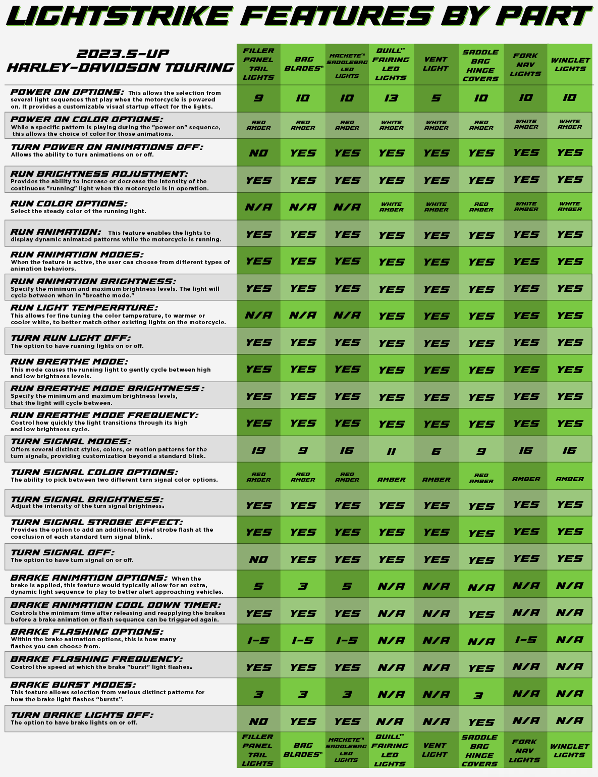 • Turn signal color options: The ability to pick between amber or red turn signal color options.