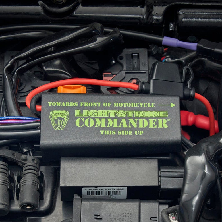 Take ultimate control of your Ciro® lighting with the Lightstrike COMMANDER™, a cutting-edge smart controller for your motorcycle. You’ll unlock unparalleled customization for your motorcycle's lighting all from the free-to-download Ciro Central Hub app where Lightstrike® is accessed. Adjust brightness, colors, turn signal effects, brake modes, and more with a simple tap on your smartphone. Install the Lightstrike COMMANDER and redefine how you light up the road.