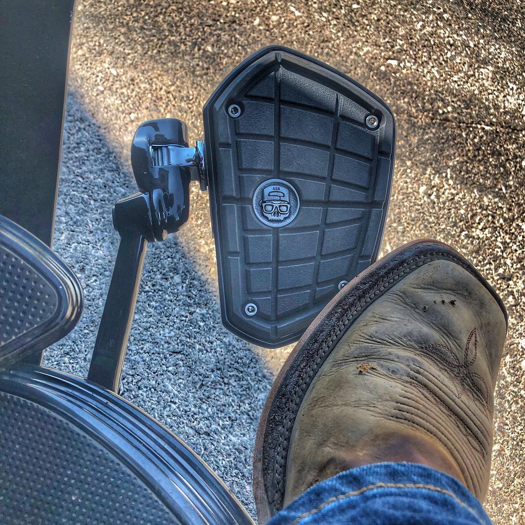 The ASR Floorboards by Ciro® are designed with comfort, style, and versatility in mind. Multiple mounting points and splined peg adapters allow you to find the perfect position whether you’re using them as passenger boards, highway pegs, or driver floorboards. The unique, aggressive styling was created in conjunction with Adam Sandoval in an effort to maximize comfort, grip, and durability.