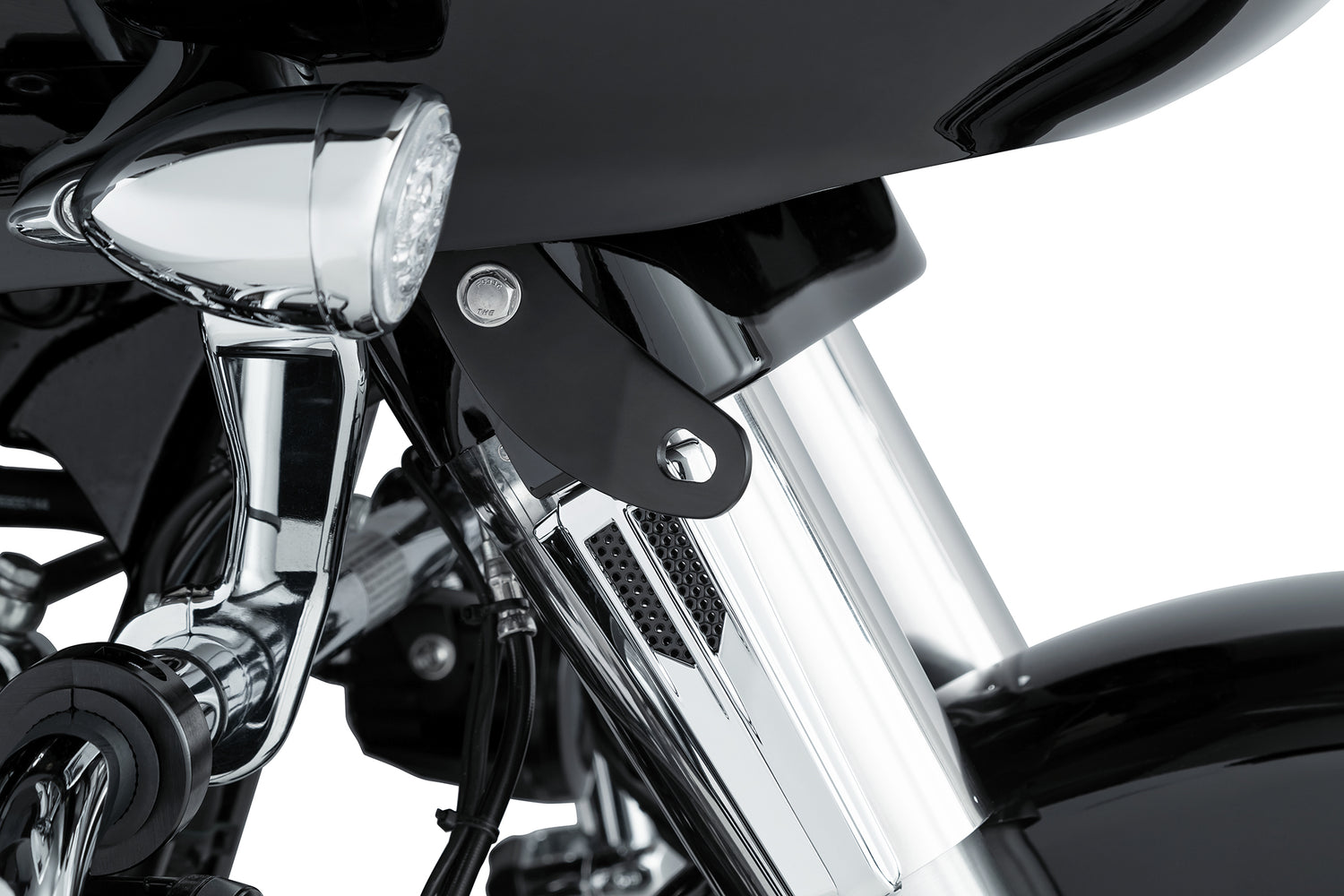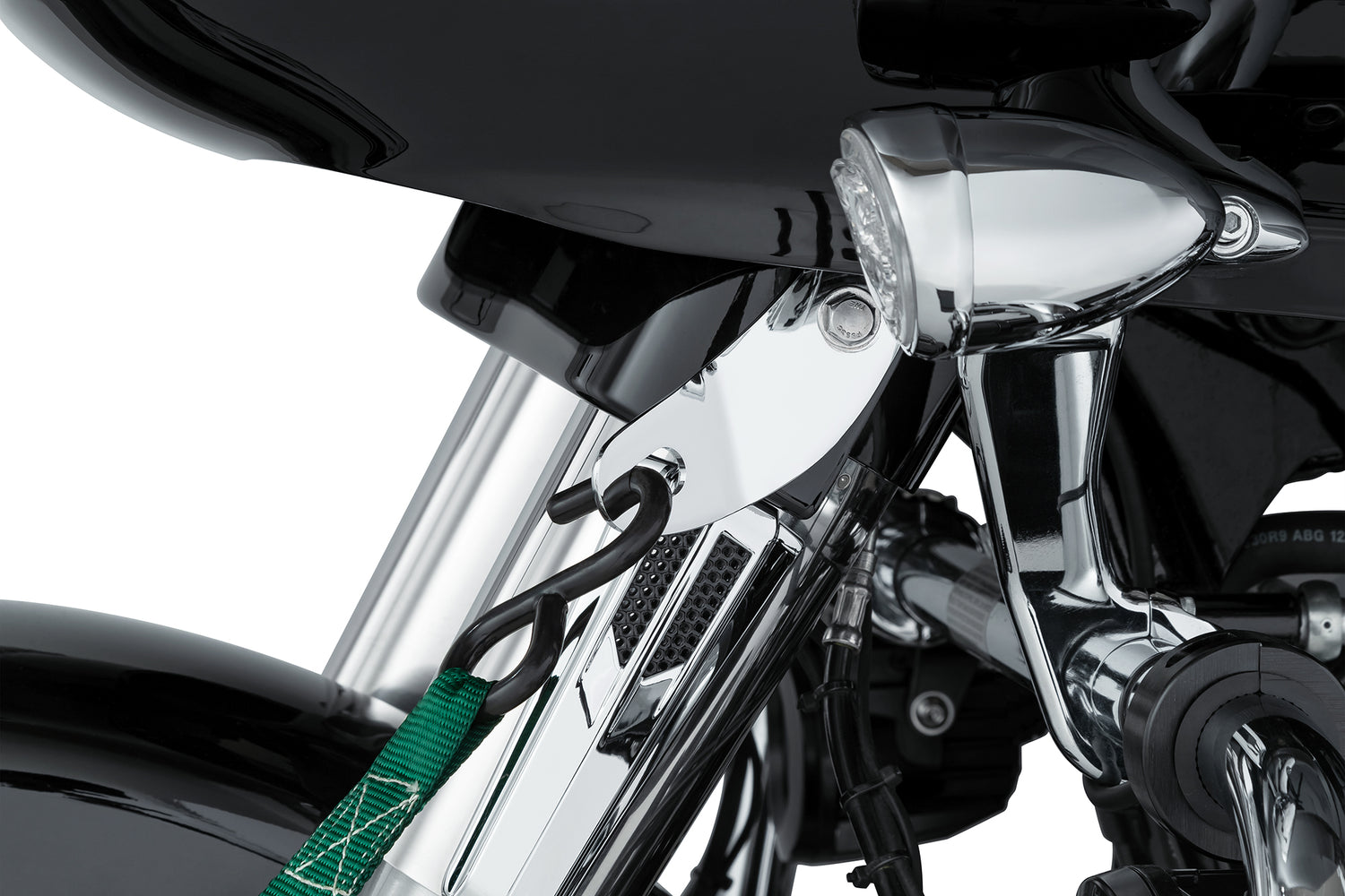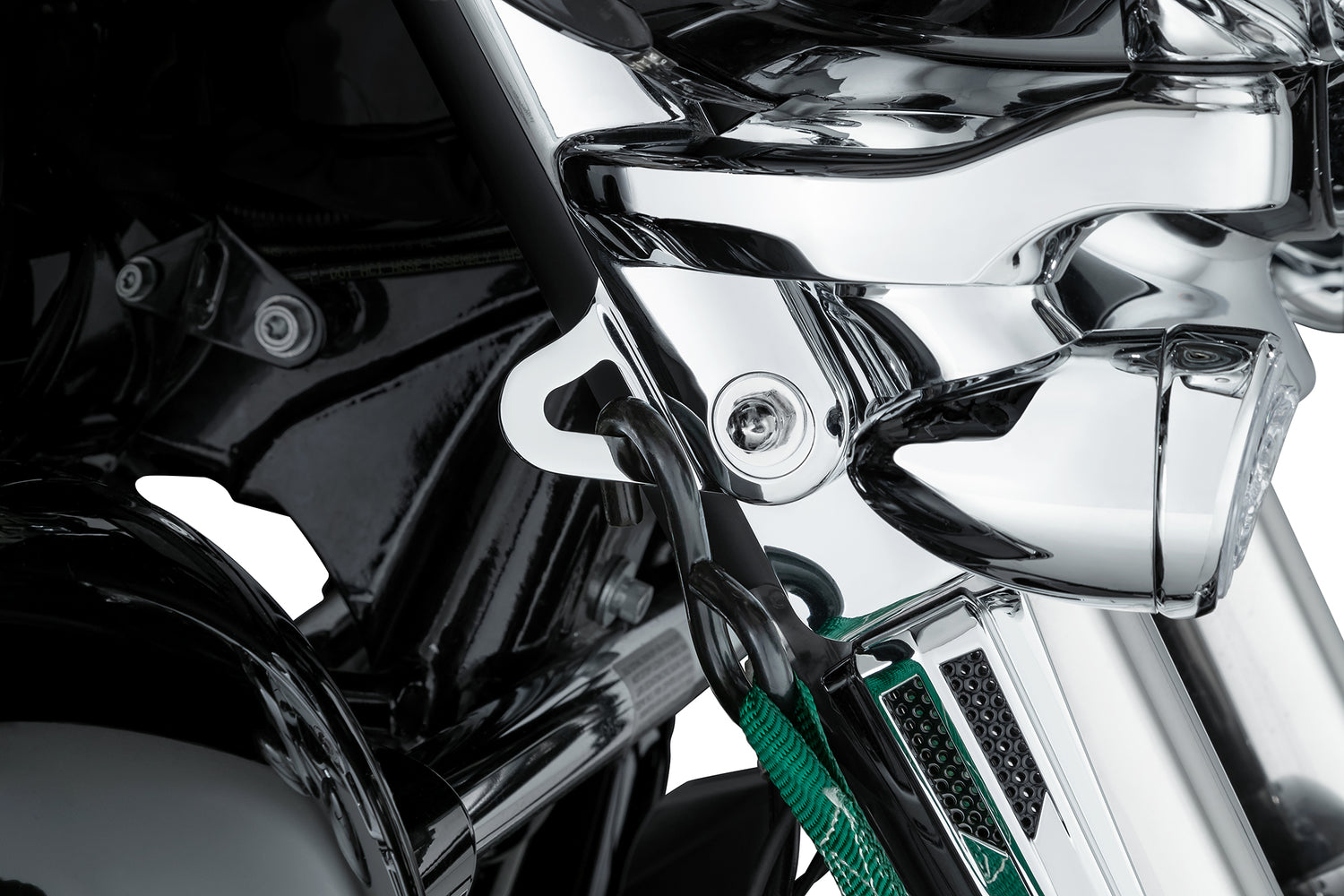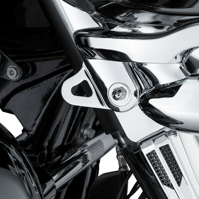 The Ciro Harley touring Tie Down Brackets offer a secure and convenient location to connect tie-down straps to the front of your motorcycle during service or trailer transport. Available in black or chrome to blend in seamlessly with your motorcycle.