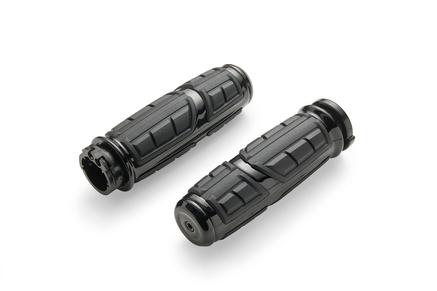 Ciro Chicane Grips give superior feeling of control and vibration dampening in a cool looking package. The metal cage surrounds EPDM rubber pads all over a polymer base that is super durable for years of excellent performance. Available for 1" bars for cable throttle models.