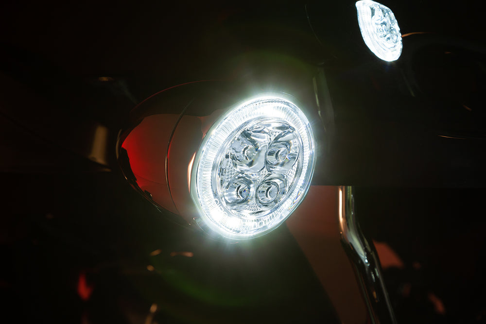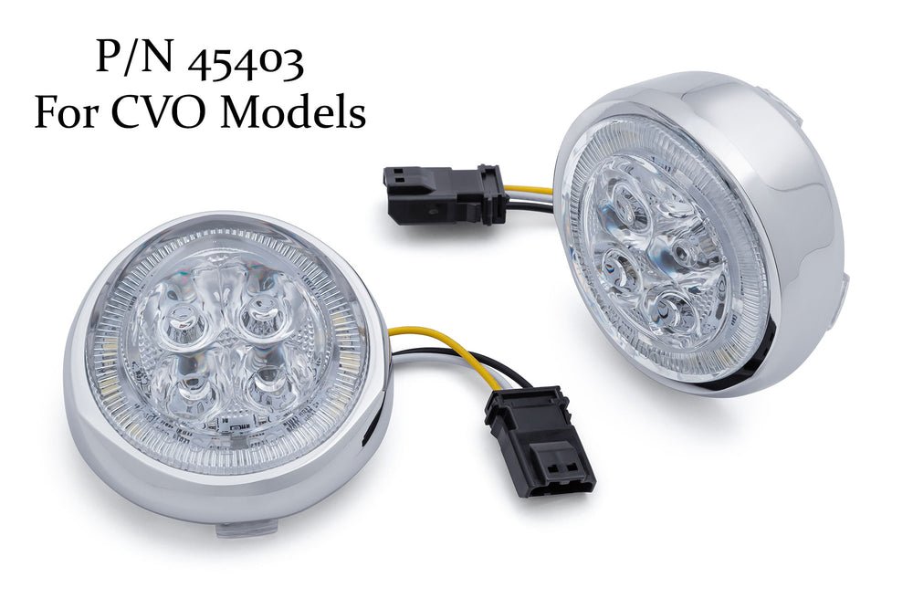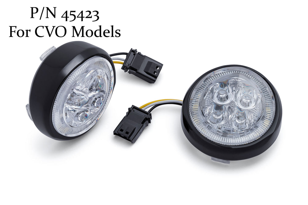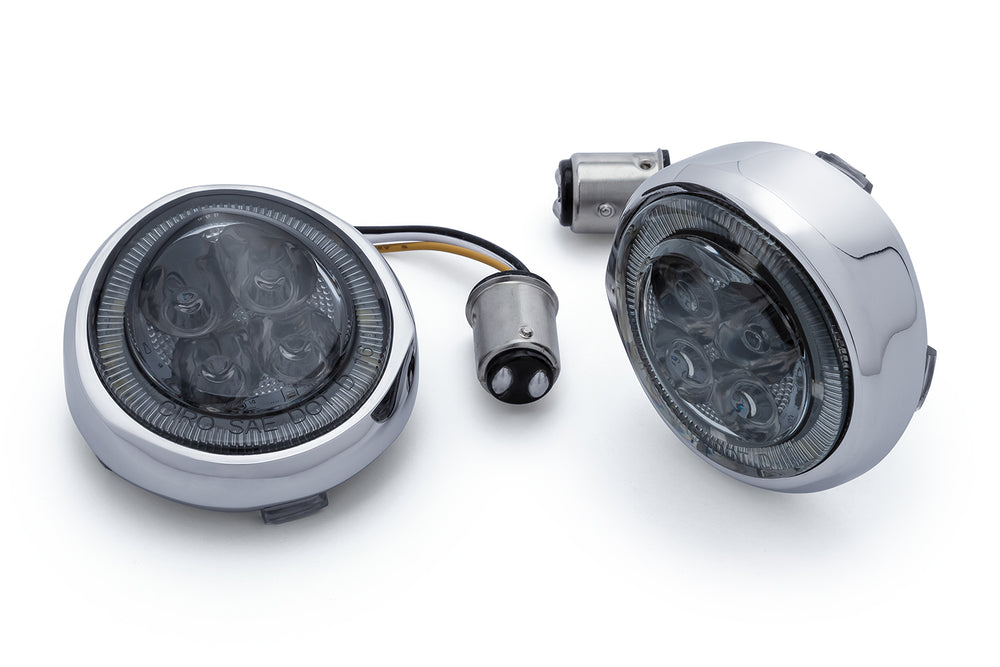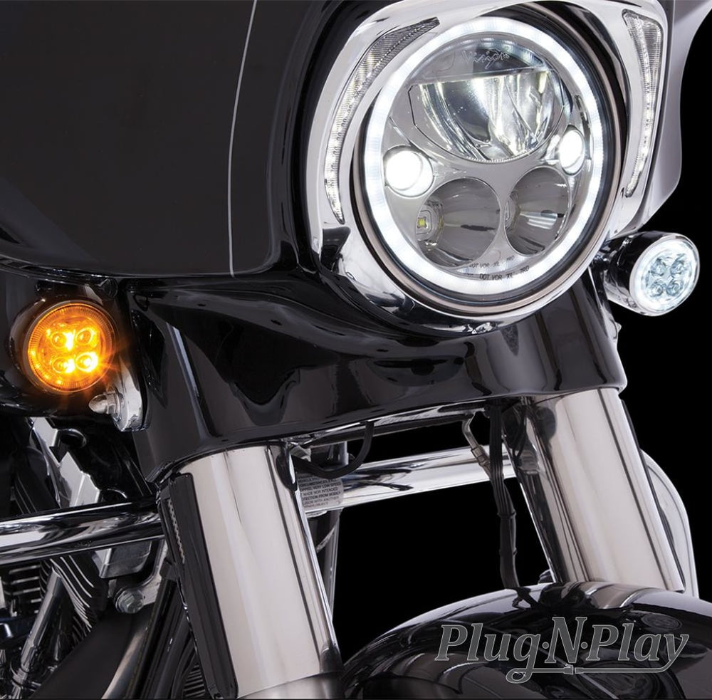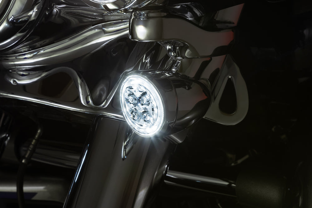 The Ciro Fang Front Signal Light Inserts are a great way to add modern styling and class to your bike while also increasing visibility. We've engineered the lens to amplify light output for maximum brightness as well as DOT compliance. The result is an eye-catching white LED halo driving light and super bright amber turn signal.