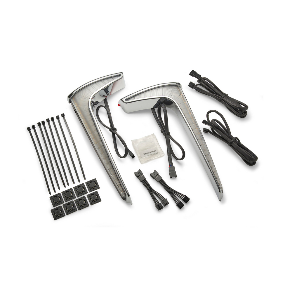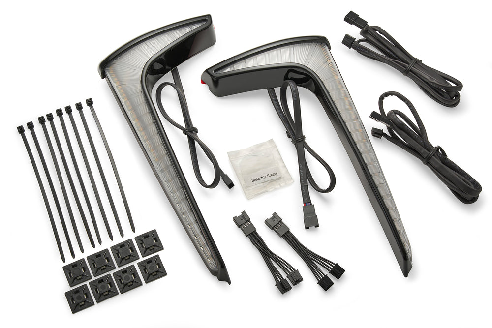 Enhance your motorcycle's visibility and style with Ciro Fang Lower Fairing Lights, crafted for Indian Pursuit. These lights are more than just an upgrade—they're a statement. Engineered with high quality construction, the Fang® Lower Fairing Lights are packed with 104 LEDs per side and include bright white run lights, amber turn signals, and are optically designed to complement your stock headlight.