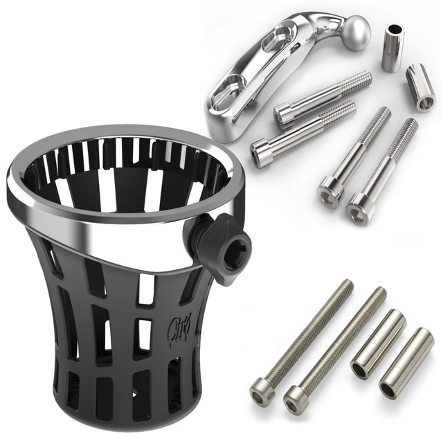 The Ciro GEN 2 Big Ass Motorcycle Drink Holder with mount for Indian is the perfect way to travel with your favorite large beverage container. Whether that container is a bottle, can, cup or tumbler, the molded neoprene rubber basket is designed to securely grip your drink. Available with a black or chrome finish and made from soft, yet durable rubber, this drink holder won’t fade from the sun or deteriorate from the elements you encounter on the road.