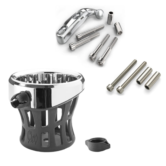 The Ciro® GEN 2 Drink Holder with mount for Indian is the perfect way to travel with your favorite beverage container. Whether that container is a bottle, can, cup or tumbler, the molded neoprene rubber basket is designed to securely grip your drink. Available with a black or chrome finish and made from soft, yet durable rubber, this drink holder won’t fade from the sun or deteriorate from the elements you encounter on the road.