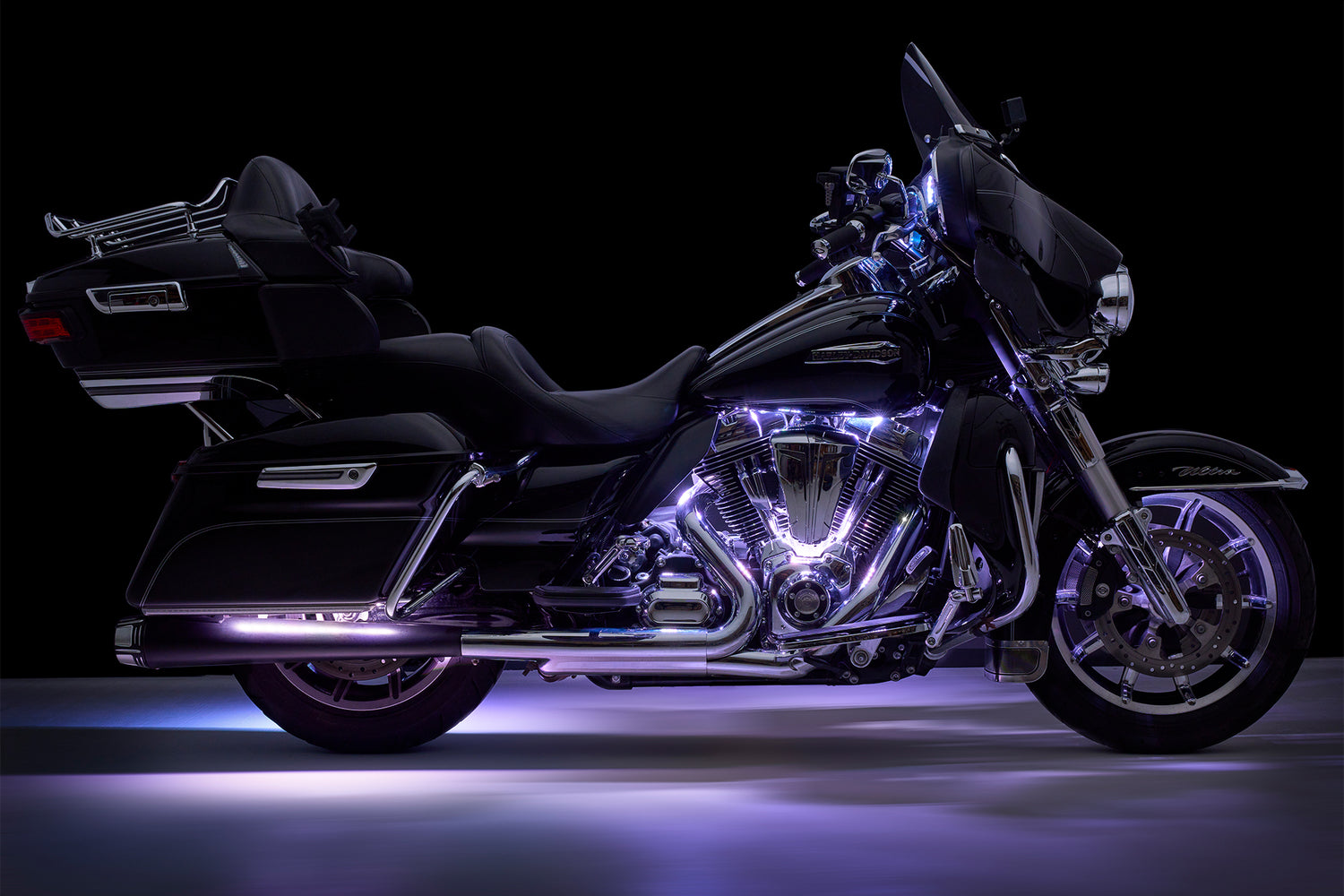 The Ciro Shock & Awe 2.0 Touring Master Kit takes your motorcycle underglow to the next level. All the components needed to transform your motorcycle into an eye-catching light show. We've packed the app full of exciting features, such as full lighting control, music and microphone integration, 3 channel output, brake light function, a racing mode to track your speed, and more! With the Ciro Bluetooth app you are able to choose from millions of colors to find the perfect match for your bike.