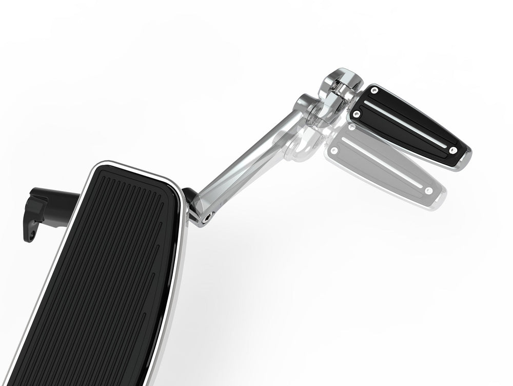Long proven as the most stable and comfortable peg mounts in the industry, Ciro Adjustable Highway Peg Mounts have revolutionized how highway peg mounting adds to your riding pleasure. We started at the frame and created a new, stronger mounting system that allows for outstanding adjustability. Looks matter, so this design integrates into the floorboard area without being obtrusive. These fold up out of the way and are the best option when you have fairing lowers.