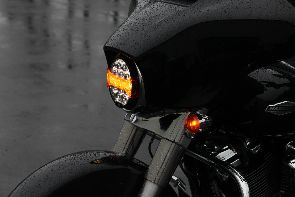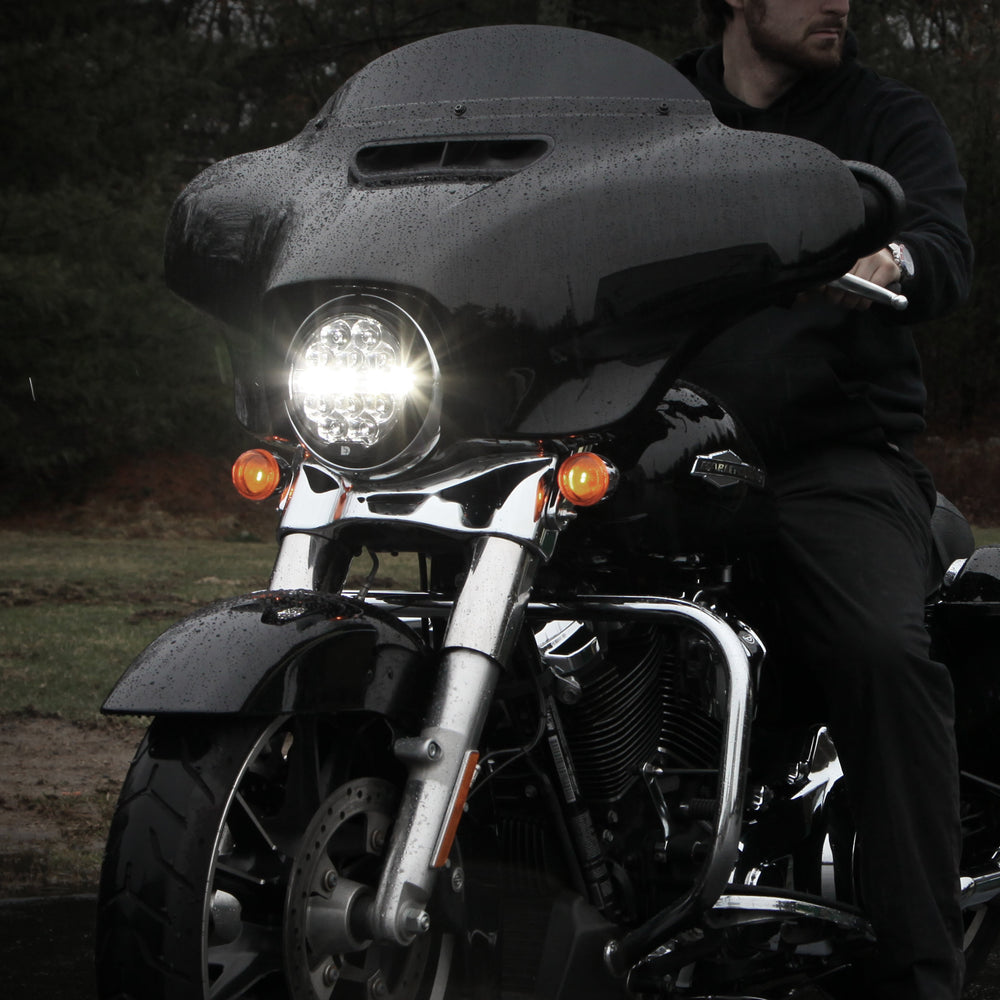 Our unique multi-mount housing design allows for effortless mounting in universal applications (without the need for a headlight bucket) but also seamlessly integrates into the H-D Road Glide and Street Glide with our easy-to-install plug-&-play bracket & wiring kits.