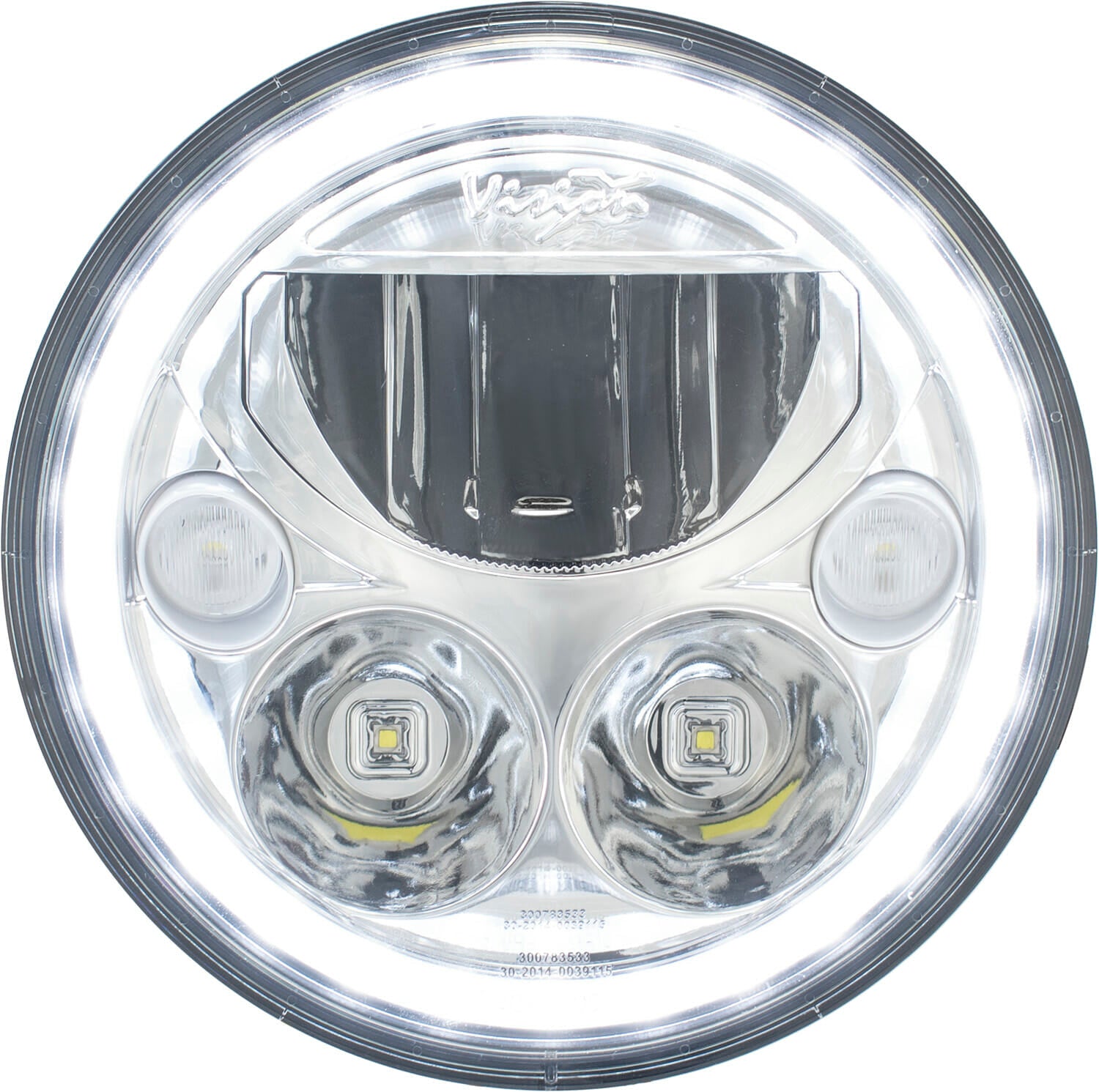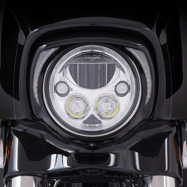 The XMC 7″ LED Headlight is the perfect accessory for any bike with a 7″ round headlight housing. With outstanding performance, you’ll turn heads and shine brighter at the same time. Available in Polished Chrome or Black Chrome finishes, these LED Headlights are the perfect touch to personalize your bike.