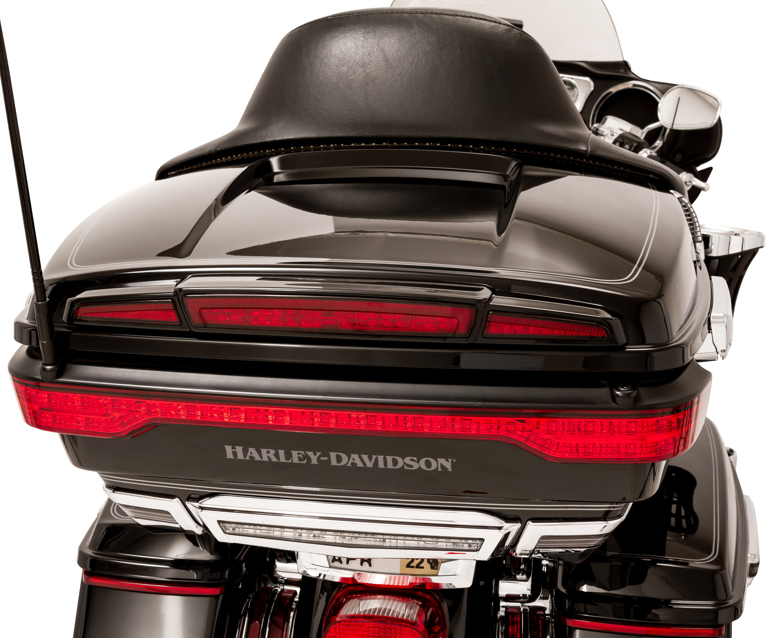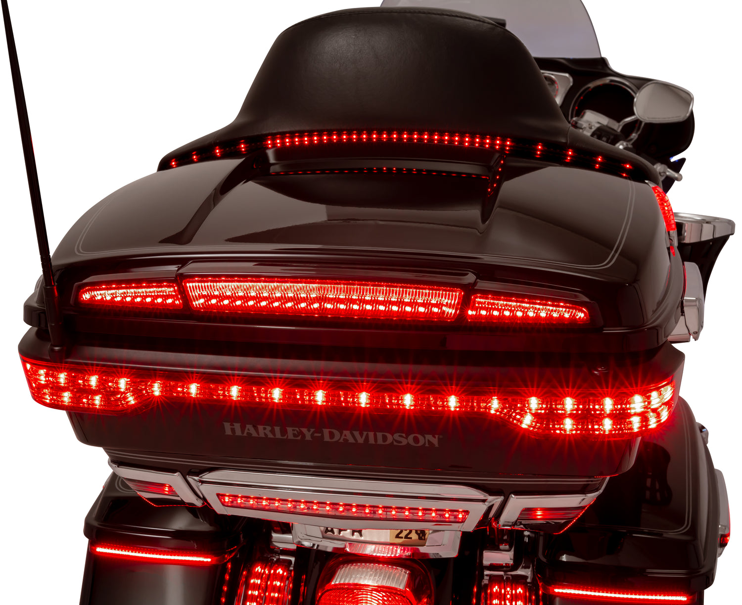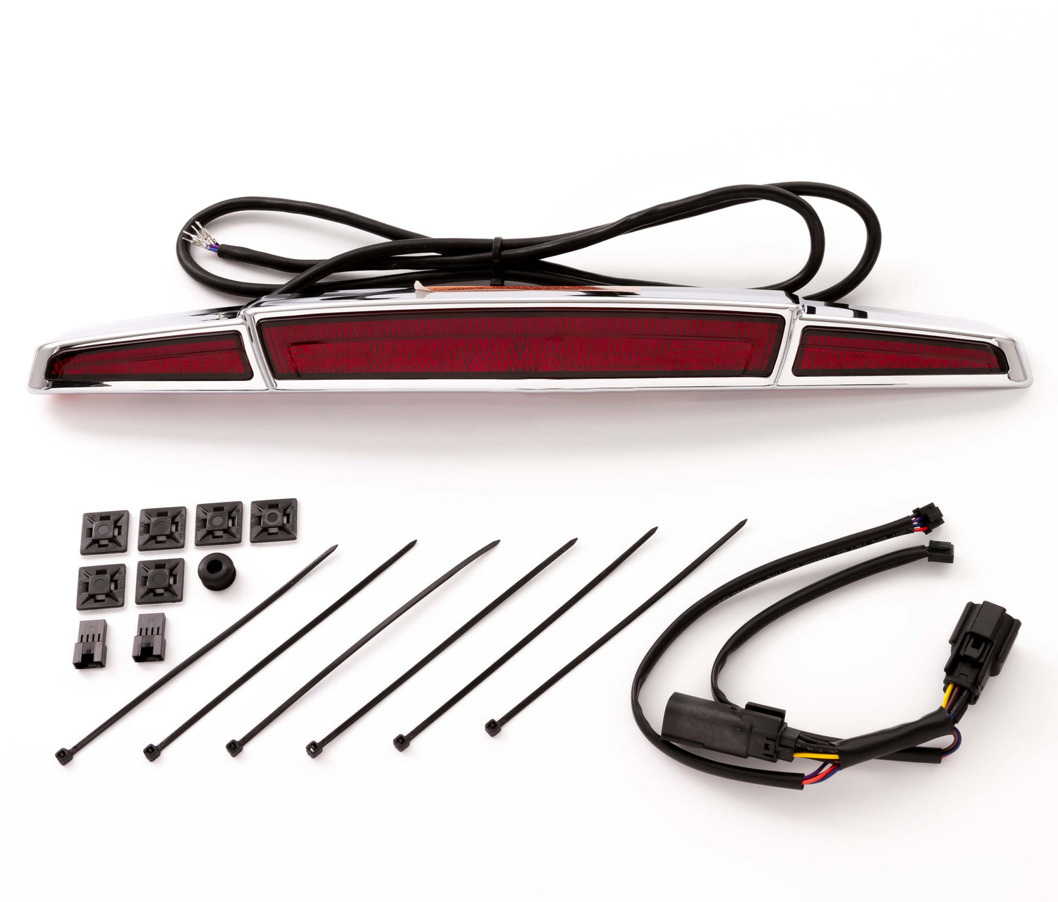 The Ciro® Streak Trunk Light with programmable Lightstrike® gives a streamlined look to your ‘14-up Tour-Pak lid. Designed to fit the lid of any ‘14-up Harley-Davidson Tour-Pak, whether it be the Ultra, King, or Chopped sizes; rigid or detachable, with or without luggage rack. This run, turn, and brake light flows with the lines of your Tour-Pak. Constructed with bright automotive grade LEDs that are backed by a limited lifetime warranty in a chrome or black housing with a red or light smoke lens.