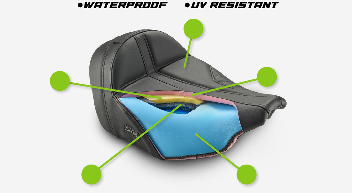 The Sandoval seating line was designed in conjunction with long distance rider Adam Sandoval to bring riders the most comfortable and stylish seat available today. Adam has hundreds of thousands of miles in the saddle so he knows what it takes to create an exceptional seat for the touring rider.