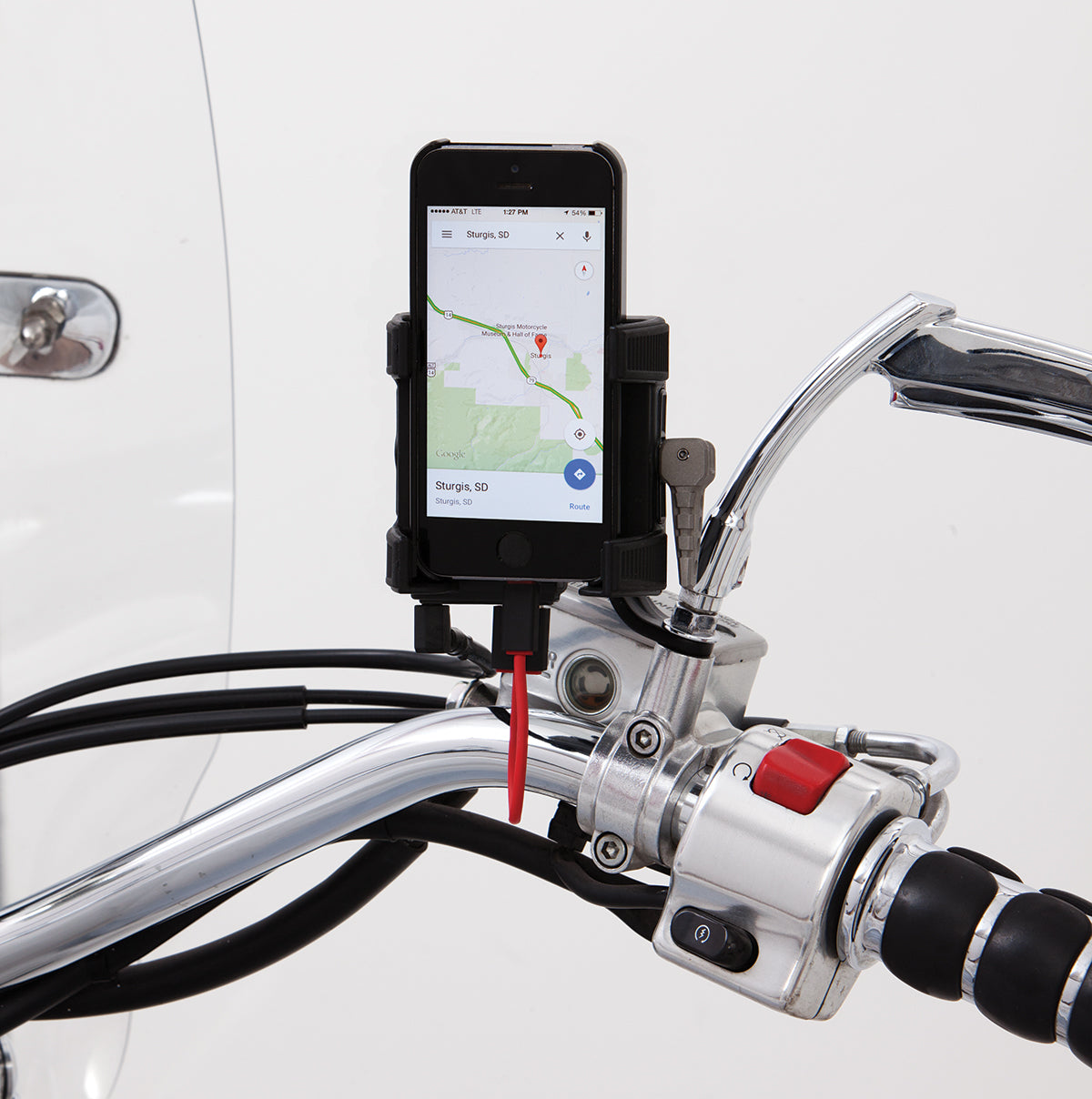 With the Premium model never worry about draining your phone battery while riding again! The Ciro Smartphone Holder has a built in 1.3 amp USB plug-in (cable not included) so you’ll be able to charge as you ride.