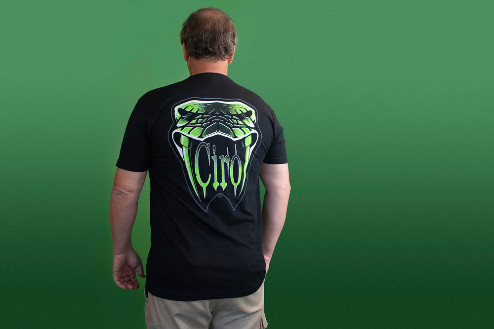 If there's anything a well-stocked wardrobe needs, it's a Ciro® t-shirt that can be consistently worn and enjoyed. Something that is light and breathable in the summer and versatile enough for layering in the winter. Customized with our large Ciro snakehead logo on the back and Ciro logo on the upper left chest, it makes for a perfect day-to-day shirt.