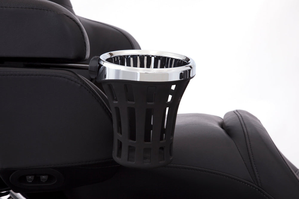 The Ciro GEN 2 Big Ass Motorcycle Drink Holder is the perfect way to travel with your favorite large beverage container. Whether that container is a bottle, can, cup or tumbler, the molded neoprene rubber basket is designed to securely grip your drink. Available with a black or chrome finish and made from soft, yet durable rubber, this drink holder won’t fade from the sun or deteriorate from the elements you encounter on the road.