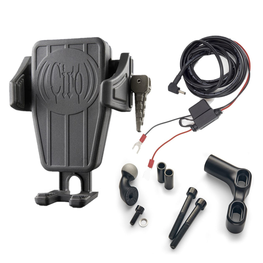 The Ciro GEN 2 Cybercharger Motorcycle Phone Holder is the evolution of our top-rated phone holder with integrated 15 watt wireless fast charging. Compatible with the latest smartphones, the Cybercharger Phone Holder will securely grip your phone while never leaving you without a charge!