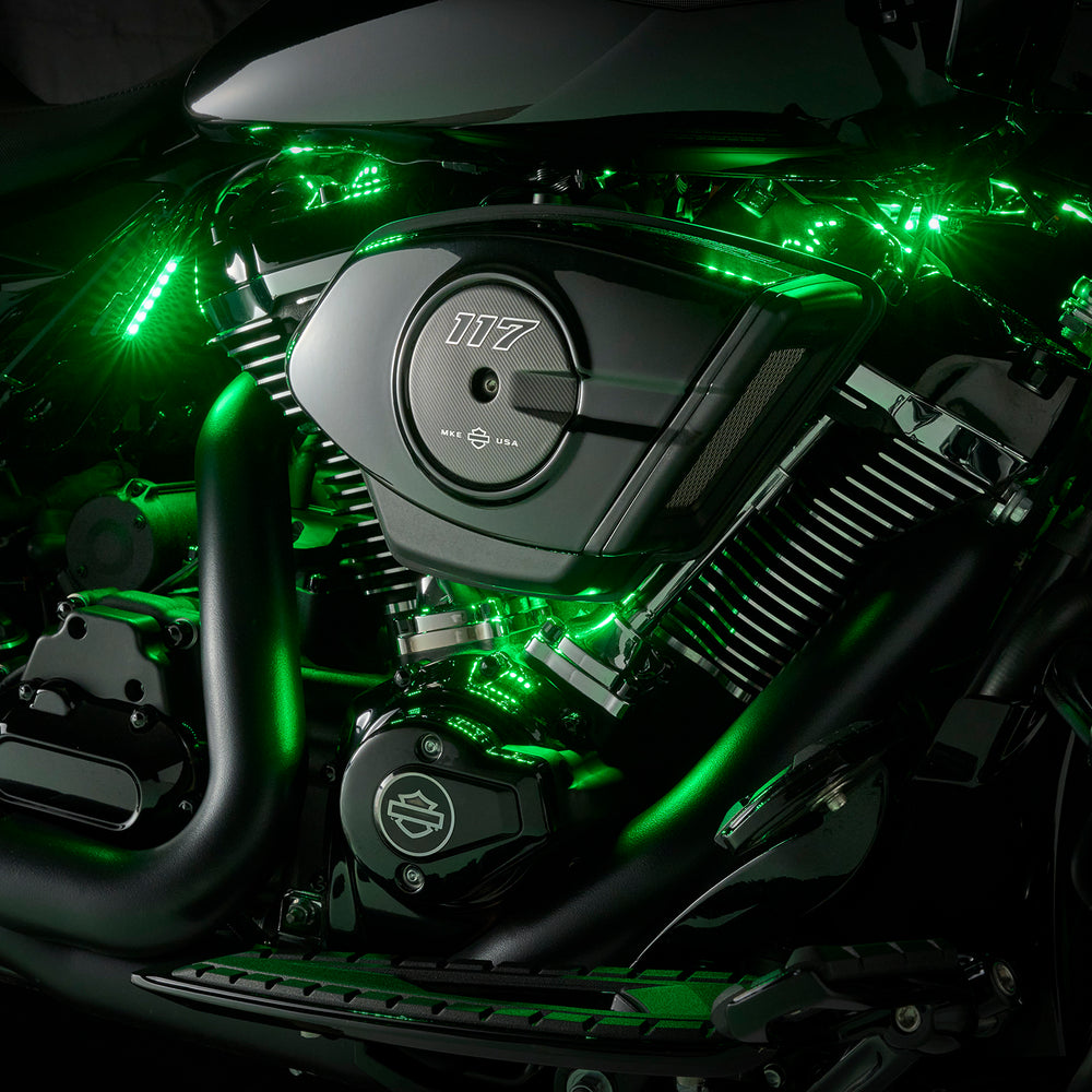 Shock & Awe 3.0, the next level of multi-color LED motorcycle lighting! Packed with exciting new features, this version is designed to enhance your ride’s style like never before. Sync the lights to your music, explore endless color options, and bring your motorcycle to life in stunning, vibrant detail. Shock & Awe 3.0 delivers unparalleled control and creativity for a truly personalized look!