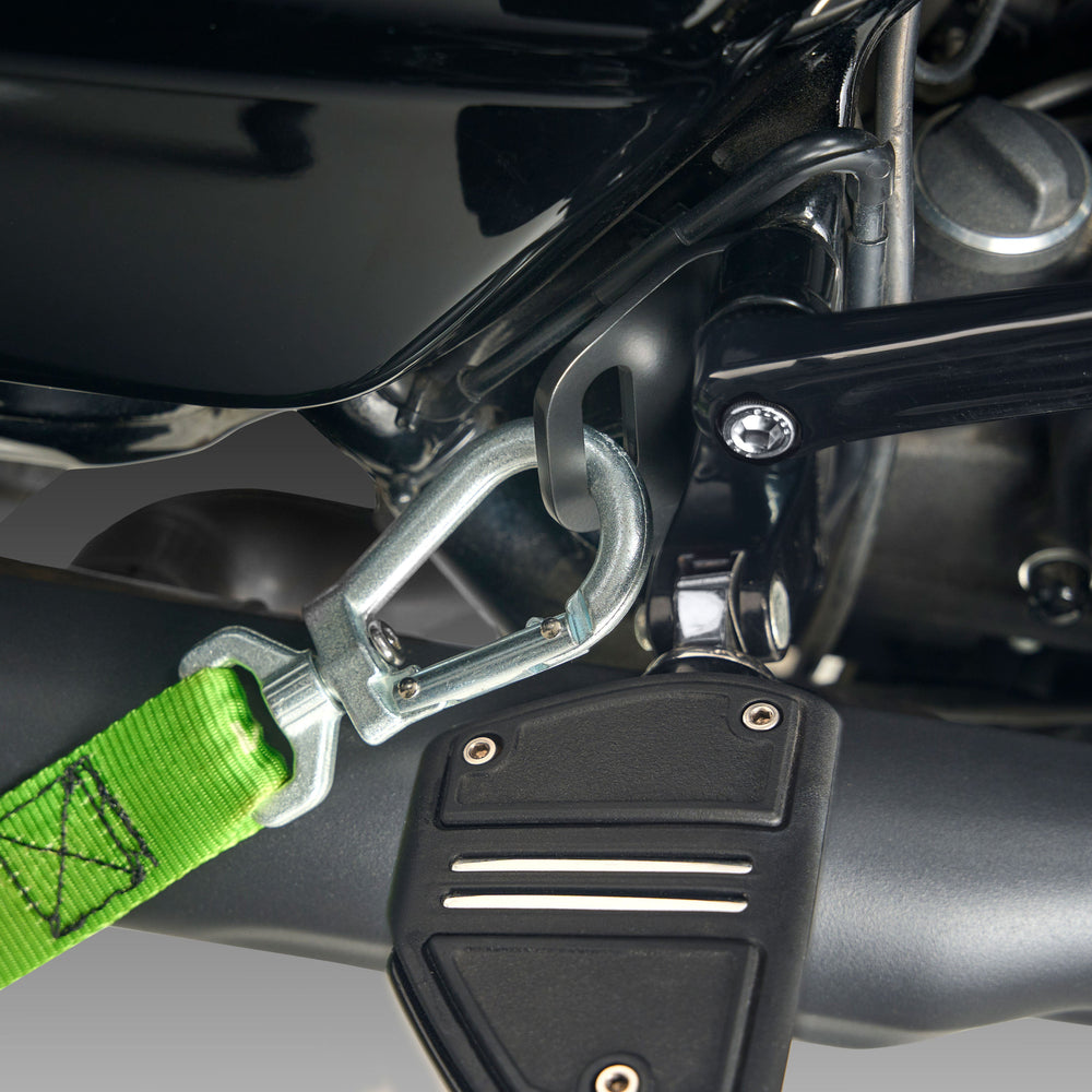The Ciro Harley Rear Tie Down Brackets offer a secure and convenient location to connect tie-down straps to the rear of your motorcycle during service or transport. Available in black to blend seamlessly with your motorcycle.