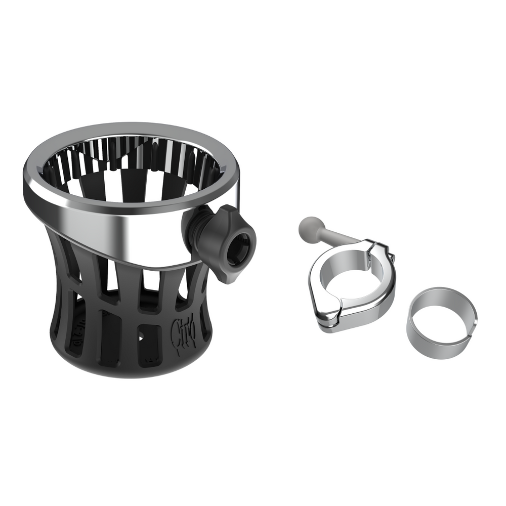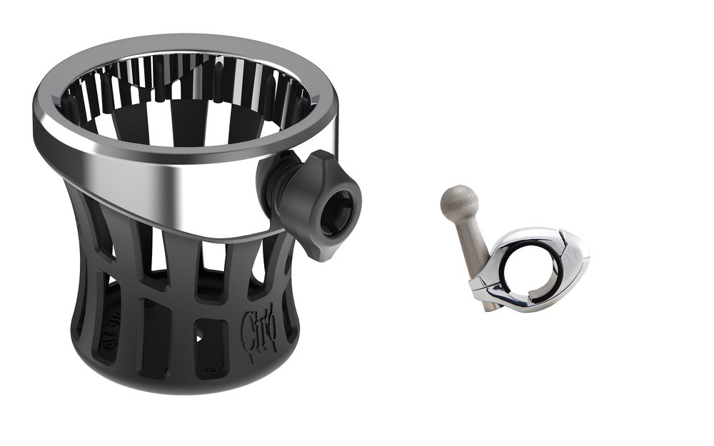 The Ciro GEN 2 Motorcycle Drink Holder is the perfect way to travel with your favorite beverage container. Whether that container is a bottle, can, cup or tumbler, the molded neoprene rubber basket is designed to securely grip your drink. Available with a black or chrome finish and made from soft, yet durable rubber, this drink holder won’t fade from the sun or deteriorate from the elements you encounter on the road.