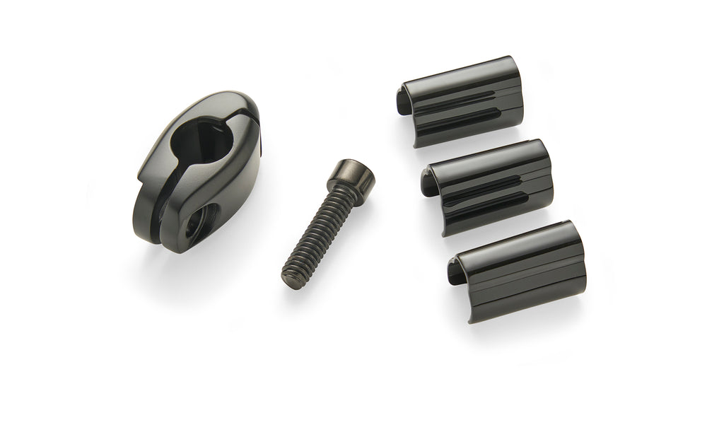 This durable, premium aluminum Flag Mount is designed for 1/2" diameter tube luggage racks, ensuring your flag stays firmly upright with a sleek, hinge-free design. It includes wire management clips for a tidy and straightforward setup. Featuring 1/4-20 hardware, installation requires no drilling. Choose from chrome or black finishes to complement your bike’s style.