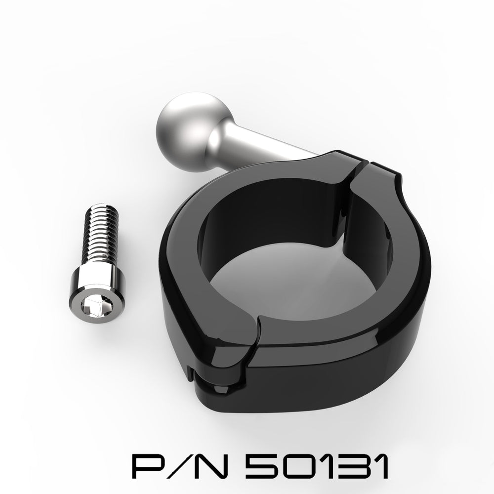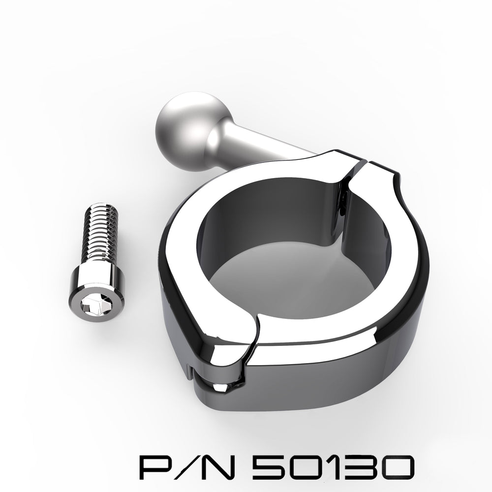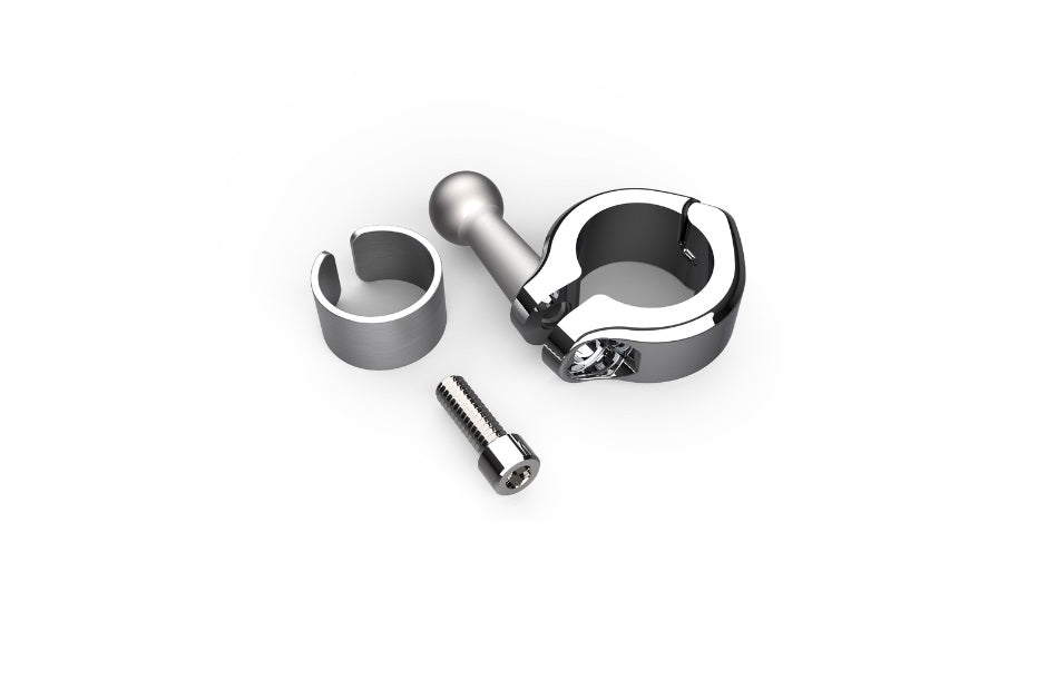 Clean, single bolt attachment clamp made of heat treated aluminum. Compatible with Ciro accessories, including phone holders, drink holders and camera mounts. Available in chrome plated or black finish and in 1-1/8" or 1-1/4" kit and 1-1/2" kit (each kit sold separately) .
