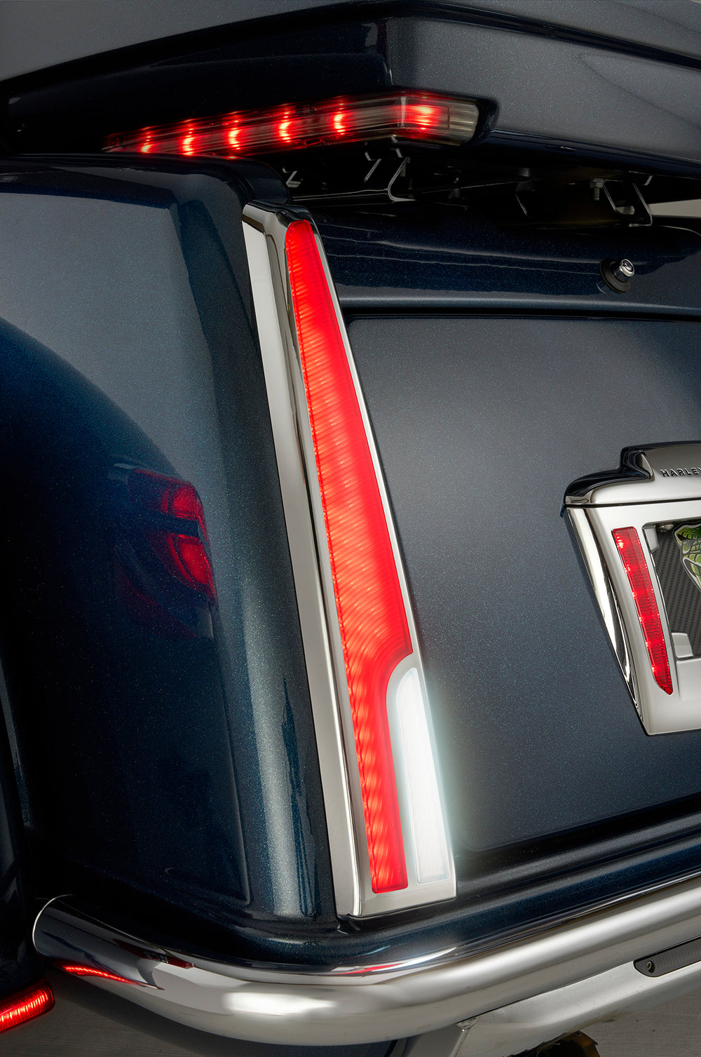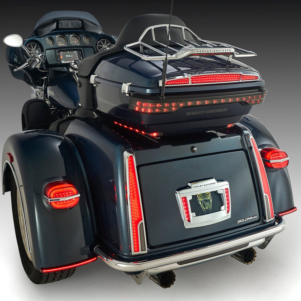 Inspired by classic, luxury automotive design, the Ciro® Calade™ Tail Lights are the most exciting lighting product for your Tri Glide. Packed with the power of a combined 128 LEDs, this lighting system shows the world you have arrived; safely and with style.